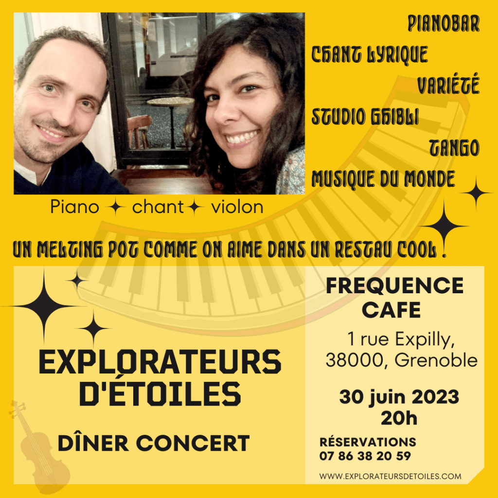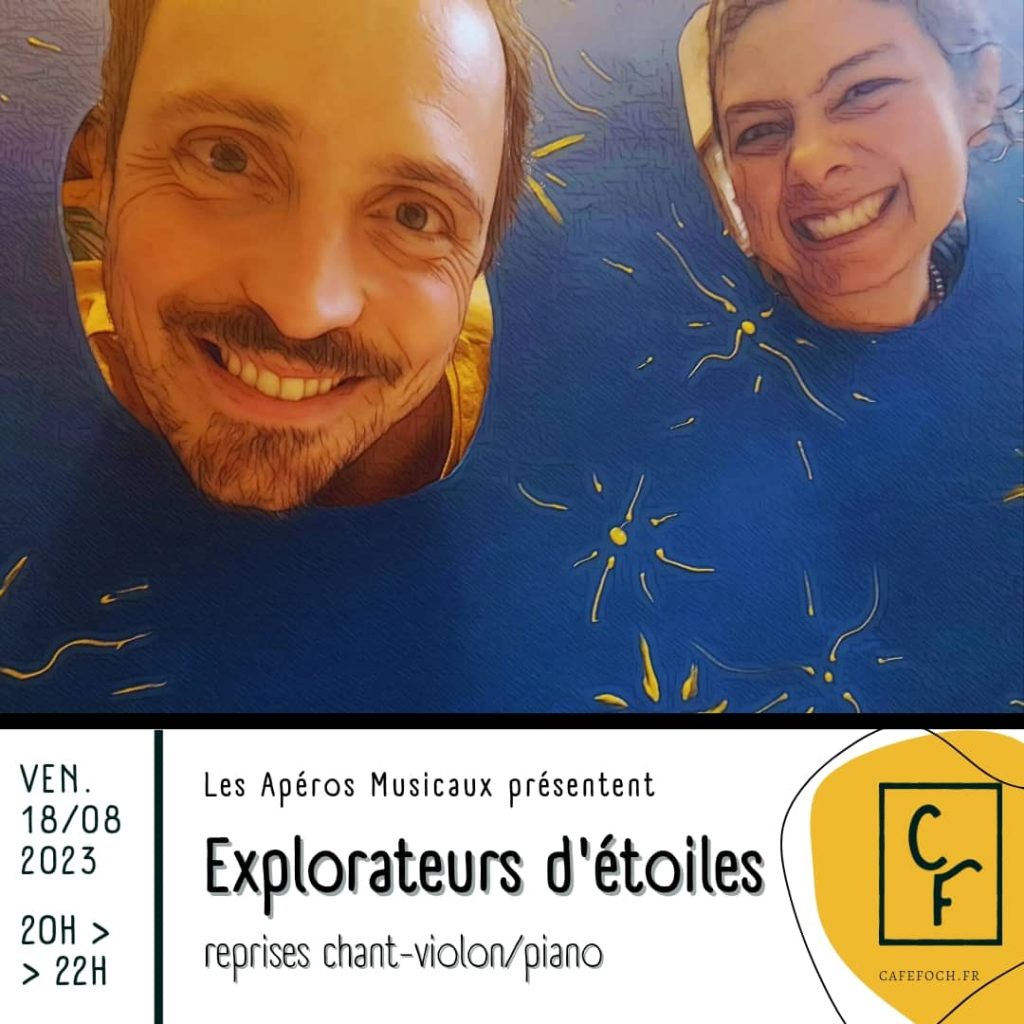 Explorateurs d’étoiles est un duo formé en 2021 : David Morlighem est principalement au piano et Selma Fortin au chant et au violon.